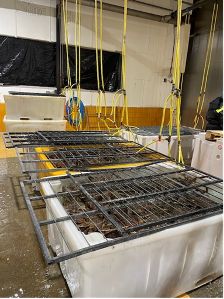 - Ved å fylle opp disse 700 liter kar med en krabbetetthet på ca. 2/3 av volumet, opprettholdes et godt karmiljø under kortidslagring.